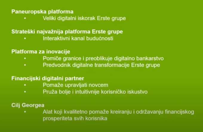 Lansiranjem platforme George Erste banka je ispunila jednu od svojih strateških odrednica – da bude lider u digitalnim inovacijama – no isto tako osigurala je kontinuitet inovacija u narednom razdoblju.
