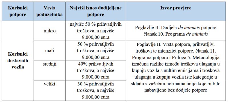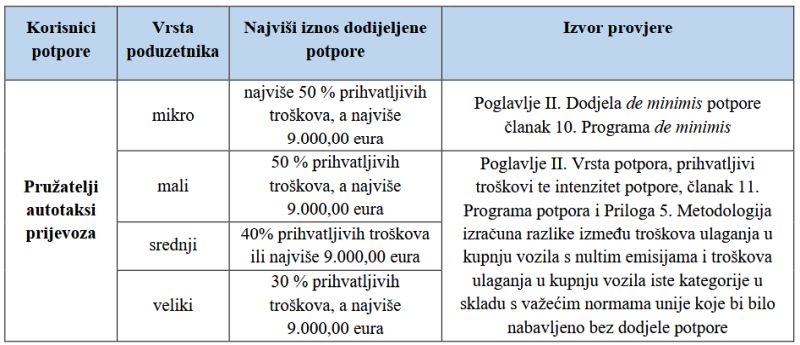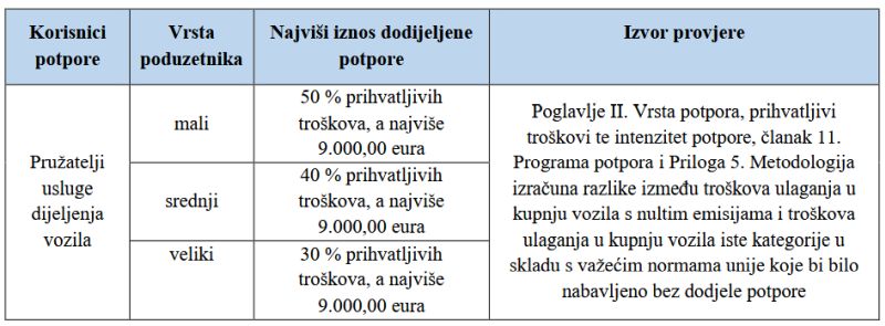 Ministarstvo zaštite okoliša i zelene tranzicije i Fond za zaštitu okoliša i energetsku učinkovitost objavili su novi Poziv za dodjelu bespovratnih sredstava za nabavu električnih vozila, namijenjen pružateljima usluge autotaksi prijevoza, korisnicima dostavnih vozila te pružateljima usluge dijeljenja vozila (car-sharing). Prijave se primaju od 15. siječnja 2026. godine.