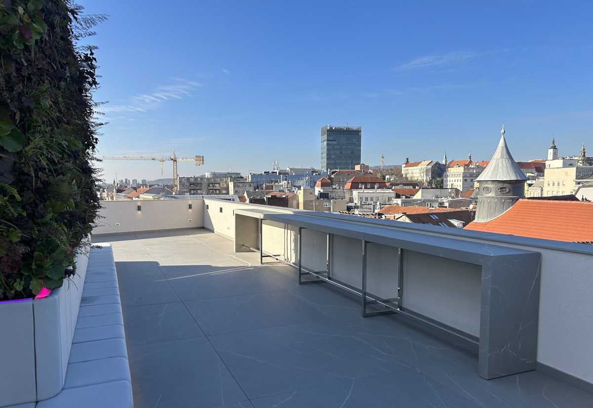 Na vrhu hotela je terasa na kojoj su već sada vertikalni vrtovi koji daju cijelom prostoru poseban štih. No, posjetitelji će za otvorenje “rooftop bara” ipak morati pričekati toplije dane i proljeće 2024. godine.